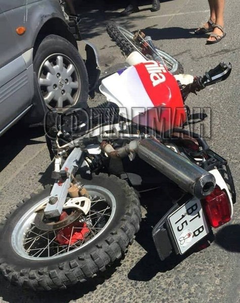 Мотористът за щастие бил с каска и така е предпазил главата си от размазване в дясната част на предното стъкло, където ясно се виждат следите от удара. Кросовият мотор „Априля” е буквално усукан на осмица, но за пълен потрес на всички участници в движението – пешеходци, шофьори и ченгета, изхвърчалият на 3-4 метра разстояние младеж бавно се изправил и дори направил няколко крачки без да залита.