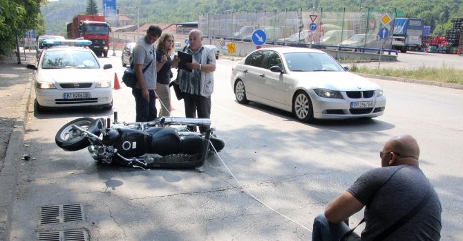 24-годишен студент се удари в лек автомобил с мотора си, съобщи Булфото. Инцидентът стана тази сутрин на ул. "Магистрална" във Велико Търново. Мотоциклетистът е пострадал и е откаран в ортопедичното отделение на местната болница със счупен крак.