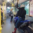 Мотоциклетист влезе с мотора си в автобус от софийския градски транспорт. Пред очите на пътниците той паркира машината си на местата за правостоящи и без да слиза от седалка, се повози "на чужд гръб".