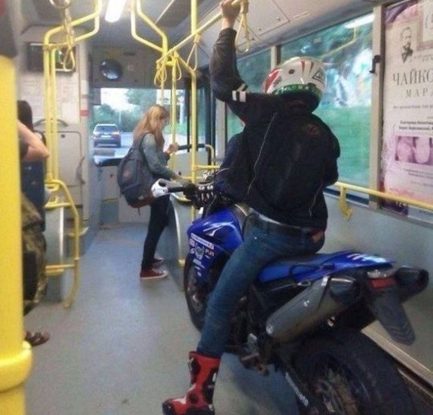 Без отговор обаче остават въпросите - как така шофьорът е допуснал подобно своеволие и на какво ли са свикнали пътуващите в автобуса, след като се возят рамо до рамо с мотоциклет, без това да им направи особено впечатление...