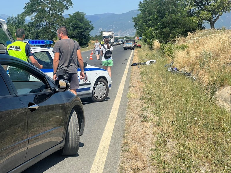 Инцидентът, настъпил около 10:30 ч., е между мотоциклет и лек автомобил, уточниха от полицията.