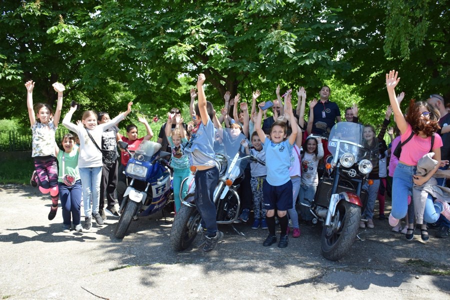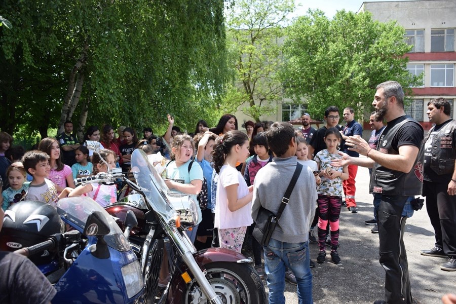 Професионален инструктор ги запозна как безопасното могат да управляват велосипеди и мотоциклети. Експерт от БЧК - Русе представи пред учениците правилата за оказване на първа помощ при инциденти и направи демонстрация. С атрактивните си облекла интересът на децата предизвикаха членовете Мото клуб Lowlanders МС Русе, които разясниха спецификата на устройството, правилата и йерархията в един мото клуб.