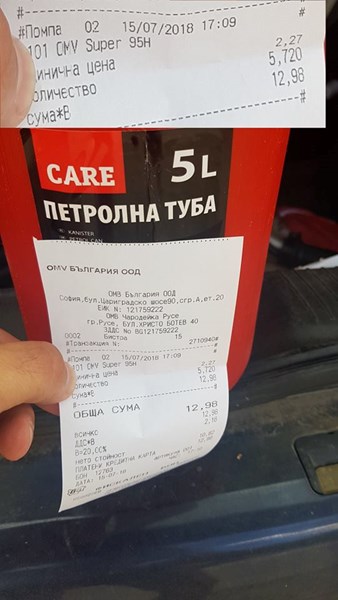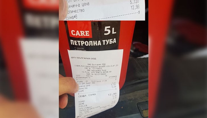 Милен Витанов е заредил на бензиностанция ОМВ на булевард "Христо Ботев" в Русе 5,720 литра бензин в туба с вместимост 5 литра.
