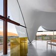 Със своите нетипични форми, структурата е в идеален синхрон със заобикалящите я планини.