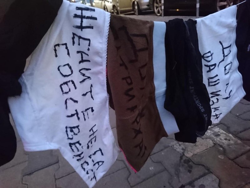Снимките на „мръсното бельо на Петров“ бяха публикувани в социалните мрежи от левия феминистки колектив „ЛевФем“. Върху тях са изписани различни послания, като: „Жените не са собственост!“, „Долу фашизма!“ и „Долу патриархата!“.