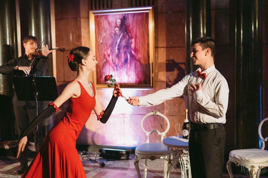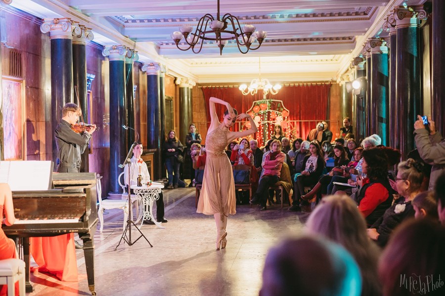 Емоционална вечер с много музика, танци, стихове и настроение. В артистичното фоайе на Държавна опера - Русе талантливите млади артисти Вероника Илиев-пиано, Преслав Ламбев-цигулка, Алена Герджикова-балет, Теодор Ванков-рецитал подариха на русенци прекрасни моменти с класическа музика и танци.