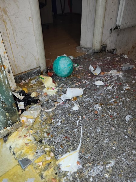 По време на размириците протестиращи са счупили стъклата на входната врата на полицейското управление, унищожили са камерата за външно видеонаблюдение и са нанесли сериозни поражения по фасадата, хвърляйки различни предмети по сградата.