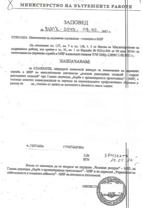 В отговор на често изтъквания упрек кой и кога е назначил съпругата на Божанов в структурите на МВР прилагаме копие от заповедта за нейното назначаване.