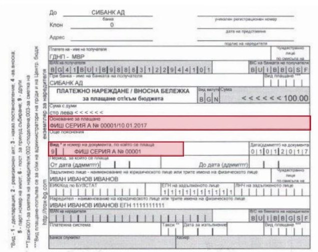 При плащане на наказателно постановление (НП) нарушителят трябва да попълни: