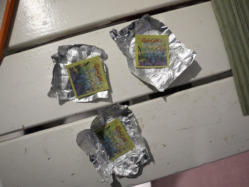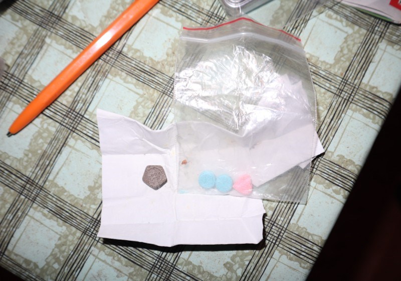 При последвали процесуално-следствени действия в жилище в Русе, обитавано от 41-годишния мъж, са открити и иззети около 5 грама марихуана, електронна везна и картончета LSD, а в къща стопанисвана от него в село Просена, още количества суха тревна маса - марихуана, метамфетамин, таблети екстази и електронна везна.