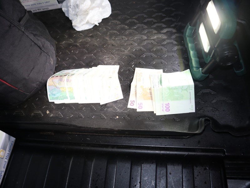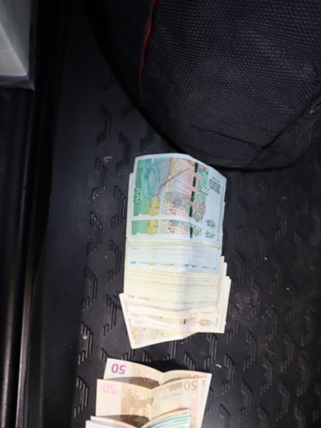 В хода на проверката в автомобила са намерени найлонов плик, съдържащ суха тревна маса с приблизително тегло около 500 грама (марихуана), сума пари от 5 000 лева и 1 000 евро, приспособления за отглеждане на растения канабис - лампи, саксии и торове.