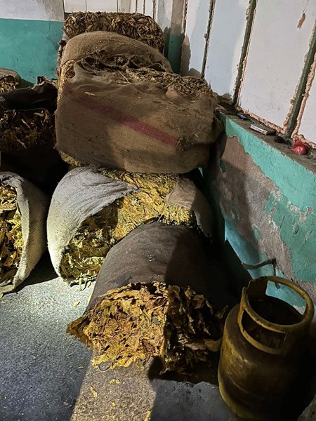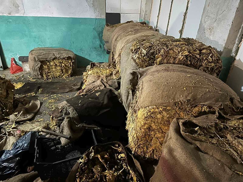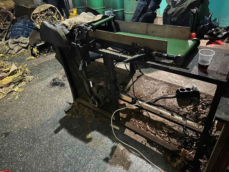 В хода на процесуално-следствените действия са иззети също така две машини за рязани на тютюн, три 25-литрови бутилки за газ пропан бутан, електронна везна и пликове за съхранение на обработен тютюн. Общото количество установен и иззет тютюн е 1500 кг на листа и около 2 кг ситно нарязан. Петимата „работници“, четирима от които с предишни криминални прояви, са задържани за срок до 24 часа.