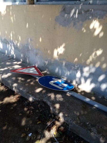 Тръбата с поставените на нея два пътни знака Б1 “Пропусни движещите се по пътя с предимство” и Г2 „Движение само надясно след знака“ са открити на посочения адрес. Днес пътното съоръжение бе върнато на знаковото стопанство при Община – Русе.