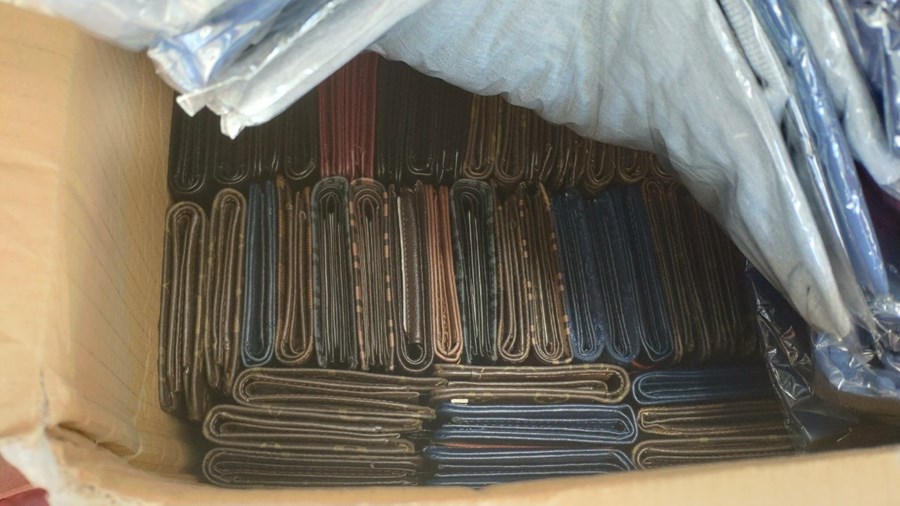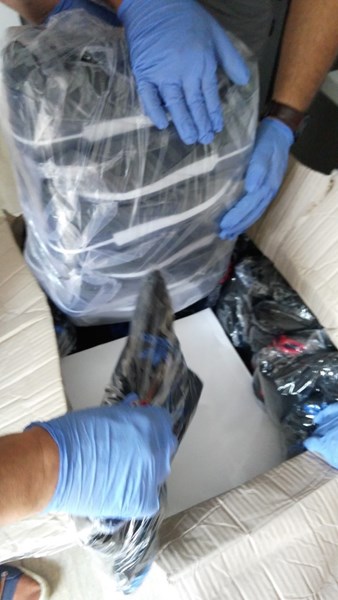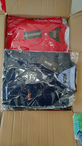 При действията на полицаите там са установени 18 кашона, в които е имало дрехи, портмонета и колани, брандирани с известни търговски марки. За въпросните артикули не е установено да има съгласие на притежателите на изключителното право върху търговските марки за клас 25 по МКСУ /международна класификация на стоките и услугите/, за конкретните марки. Те са били предадени от куриерската фирма на полицаите.