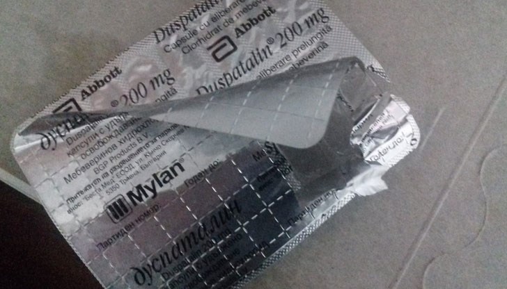 Тя е на блистер лекарство Дуспаталин, което се Дуспаталин се прилага за облекчаване на симптомите на т.нар. Синдром на раздразненото черво. Причината за масовата истерия обаче е, че самата опаковка на медикамента е "препакетована".