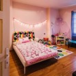 Ая също има принос в интериора на дома. Сама си избрала леглото. Трябвало да бъде достатъчно голямо, за да може на него да ляга майка или татко й, когато я приспива. Освен това таблата му е така шарена, съвсем различна от познатите детски легла.