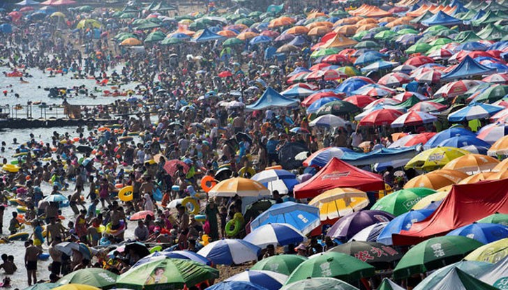 Ако си мислите, че през месец август нашето черноморие е пренаселено, трябва да видите този плаж в Китай.