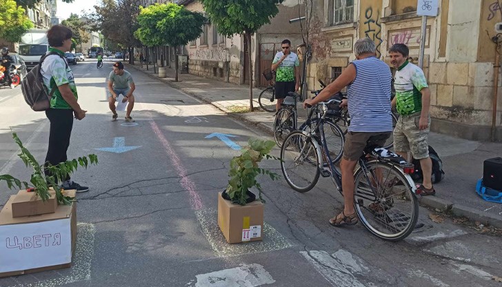 “За да работи тази инфраструктура правилно, следва ограничението на скоростта в тази улица да е 30 км/ч и да съществуват т.нар. острови, които да пречат естествено на автомобилистите да ускоряват до високи скорости” - добави Цветан Тиханов, член на УС на сдружението. “ Ние заедно с децата нарисувахме примерната велоалея с тебешири, а забранителните знаци допълнихме с уточнителна табела “Не важи за велосипедисти” подобно на западноевропейските големи градове. Островите на пътя пък са от кашони и отпадъчна растителност, за да загатнат, че това може да са кашпи с цветя, които да правят инфраструктурата, освен по-безопасна и по-красива. За двата часа в които се проведе акцията по “новоизградената” алея дори минаха 8 случайни, несвързани с нас, велосипедиста (включително и деца) очевидно търсещи маршрут за придвижване в посока голямото кръгово. Това само показва, че наистина тук има необходимост от някаква инфраструктура за колоездачи”.