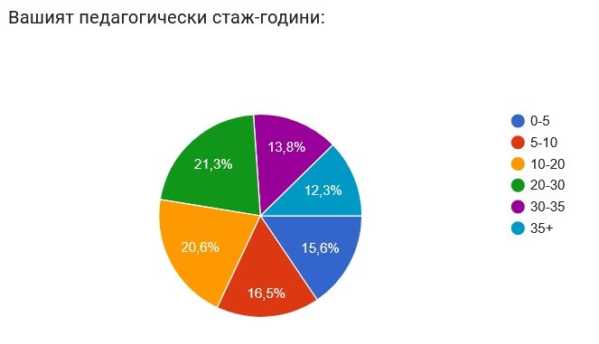 По отношение на регулярността на квалификациите, 19,4% от педагозите са имали четири и повече квалификационни обучения през последната година, 19,5% – три обучения, 33,9% – две обучения, а 27,1% – само едно обучение.