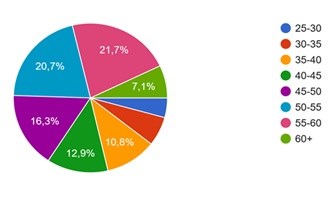 Средната възраст на участвалите педагогически специалисти е 47,3 години, което е по-ниско от средната възраст в системата - 54 години. Това показва по-голям интерес към квалификацията сред по-младите учители. Само 14,7% от участниците са мъже, което дори надвишава реалния дял на мъжете-учители в страната.