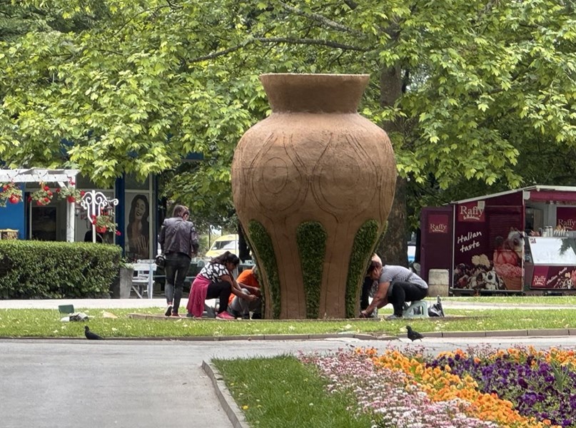 Започна зацветяването на Вазата в Парка на младежта. За целта ще бъдат използвани над 35 000 килимни цветя, след като в края на миналата седмица основата бе подготвена от специалисти по озеленяване. Един от символите на Русе ще привлича вниманието на русенци и гостите на града с атрактивен външен вид с орнаменти от различни видове цветя - зелени и червени алтернантерии, тъмночервени ирезине, бели цинерарии и червено-оранжева кана.