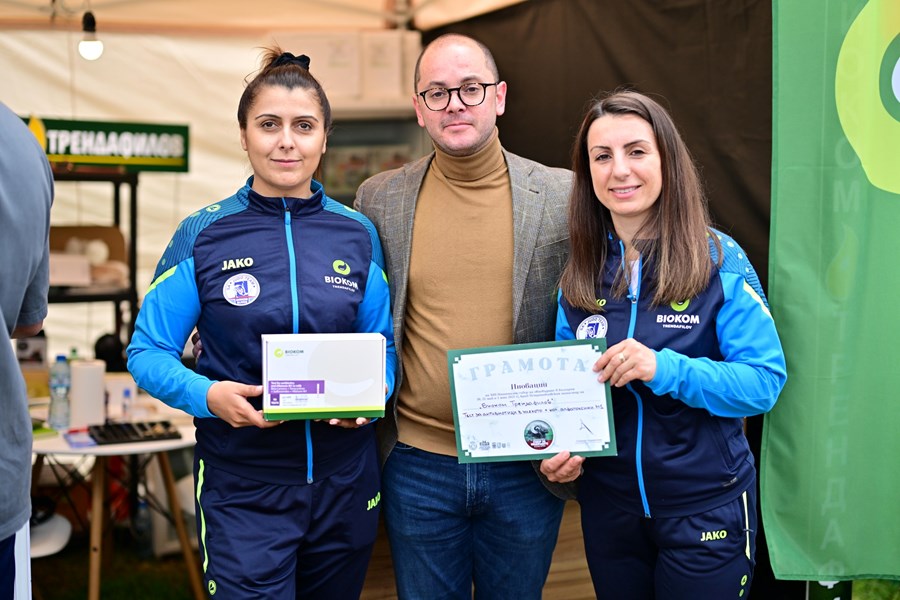 "Биоком Трендафилов" получиха тазгодишната награда за иновации за техния тест за антибиотици в млякото + алфатоксини М1. В една тестова лента могат да се тестват различните видове антибиотици, както и да се провери количественото съдържание на алфатоксини М1. Отличието връчи зам.-министъра на иновациите и растежа Красимир Якимов.