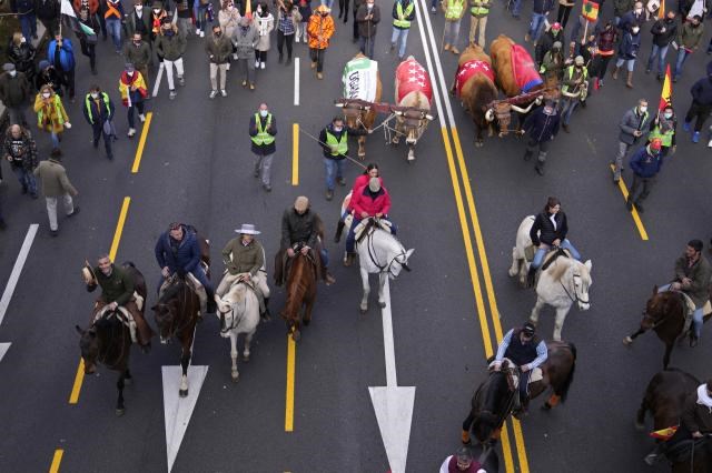 Шествието, в което има представители на повече от 500 асоциации от животновъдния, риболовния, ловния и селскостопанския бранш, тръгна от площад „ Сан Хуан де ла Крус“, мина пред Министерството на екологията и се отправи към Министерството на земеделието, информира БНР.