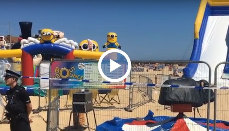 Надуваем замък избухна на плаж в Англия