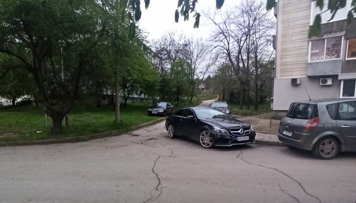 Вече втора нощ и втора сутрин този нагъл тип си паркира колата с немска регистрация по този начин - по средата на кръстовище и така затваря цяла улица.