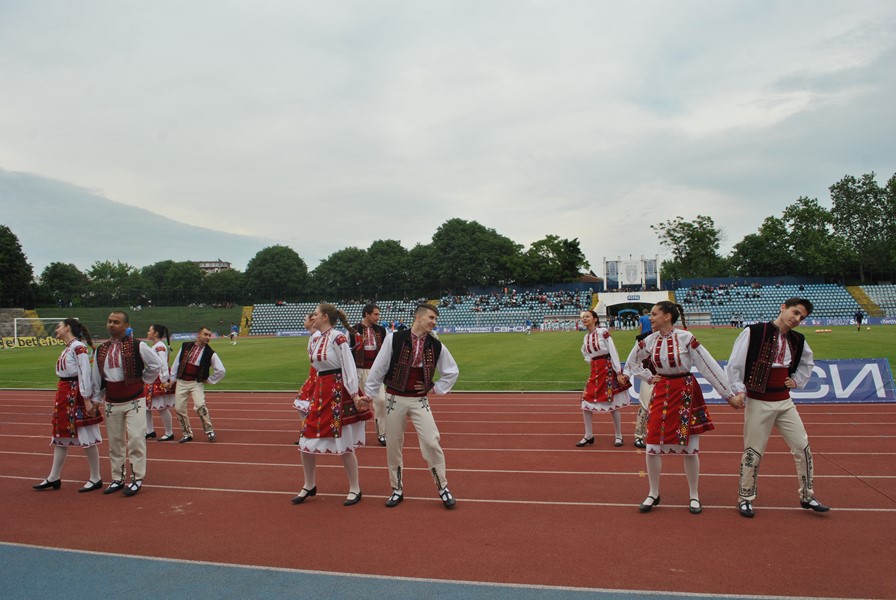 Празникът започна близо час преди мача, когато за русенската публика излязоха да пеят обичаните сестри Мирела и Пресияна Димитрови, участнички в „България търси талант“.