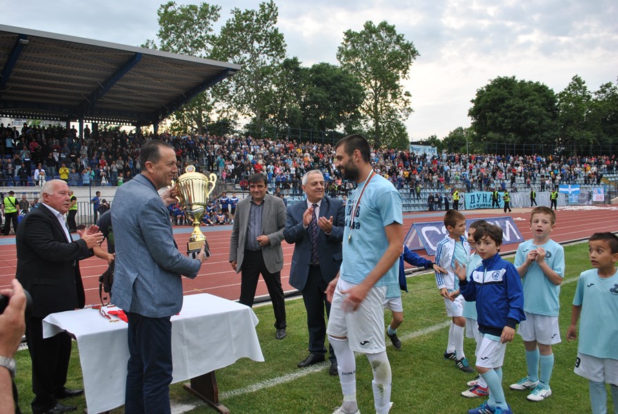Днес, на Градския стадион в Русе, пред няколко хиляди фенове и любители на футбола, ФК „Дунав“ беше награден с купа и медали за завръщането си в „А“ група.