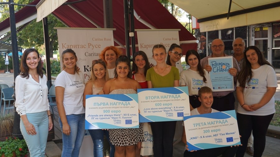 По време на събитието бяха наградени победителите от конкурса за дигитален продукт “ACTHUMAN”, проведен през третата година на проекта. Той беше посветен на видовете насилие и начините да се справяме с тях. Участниците споделяха своите продукти в Инстаграм и на платформата на проекта https://videowall.recognizeandchange.eu/contest/bg.