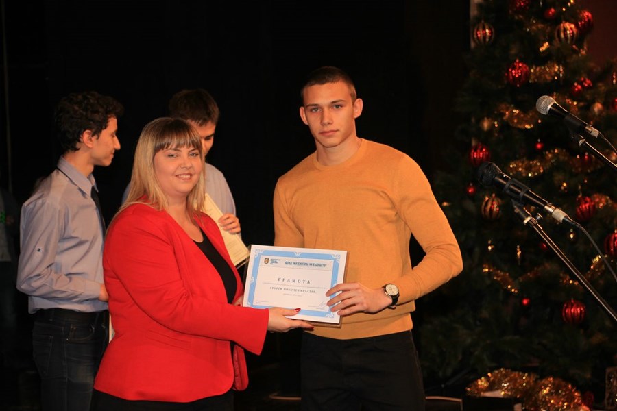 Поощрения от фонд „Математика на бъдещето“ бяха връчени на Георги Кръстев от 12 „а” клас /700 лева/ и Петър Борисов от 11 „а” клас /300 лева/.