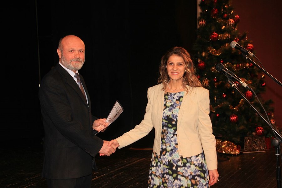 Това стана по време на провелия се снощи в Голямата зала на Доходното здание 17-и Коледен благотворителен концерт на училището. Събитието беше открито от директора на гимназията Митко Кунчев. Той връчи награди на две преподавателки от училището - Атанаска Йорданова, за постигнати високи резултати в подготовката на ученици по английски език и принос в организирането на състезания по английски език Spellig bee и HIPPO и на Снежана Пенева, за постигнати високи резултати в подготовката на ученици за участие в олимпиадата по биология и здравно образование и принос в осъществяването на проектите „Изграждане на биохимичен лабораторен център“ и „ИКТ – сила за промяна в образованието“.
