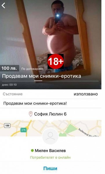 Друго, което научаваме от обявата е, че състоянието е "Използвано". Дали обаче става въпрос за това на снимките, или за състоянието на самия Милен - не става ясно.