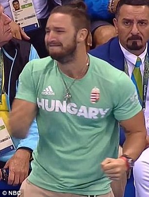 Камерите го уловиха как сърцато подкрепя своята съпруга, а накрая се просълзява, когато тя стига до златото в Рио.