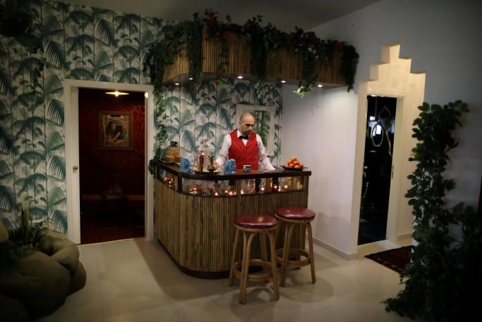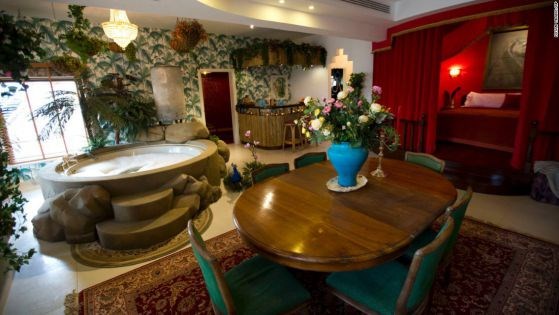 Президентският апартамент има собствен мини-театър, бар и луксозно джакузи. Но водата за джакузито идва от резервоар за вода, обсипан с дупки от куршуми.
