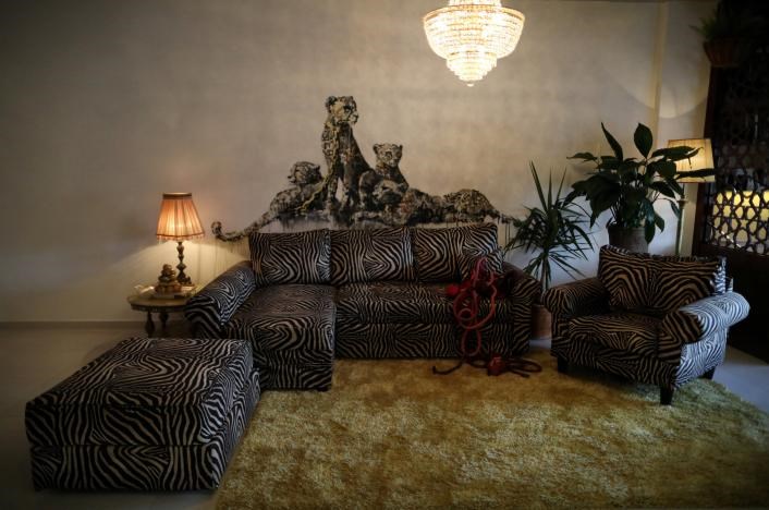 Всяка стая разполага със собствен уникален стил. Една е боядисана да изглежда като заобикаляща госта бетонна ограда и все пак в нея се чувства комфорт.