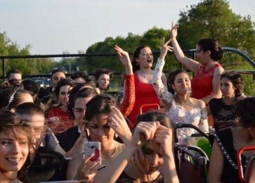Най-ман`яшкият клас отиде на бала с двуетажен автобус