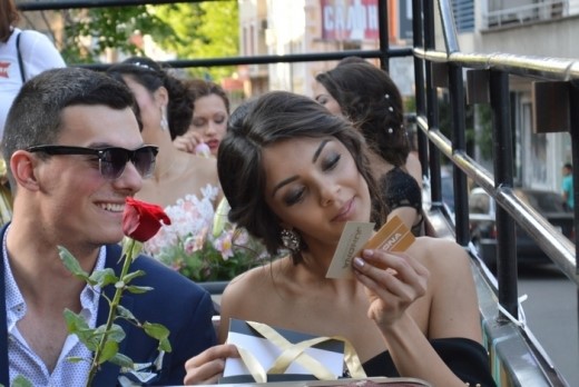 Красавица до красавица се наредиха по седалките на втория етаж - елегантни, изискани и големи купонджийки. Завършващите, напук на всички схващания, че в този ден е най-важен външният вид, доказаха, че за тях настроението и самото изживяване са на първо място. Въпреки перфектните си прически, допуснаха вятъра в косите си и накрая бяха с ръце във въздуха, небрежни прически и широки усмивки, пише "Флагман".