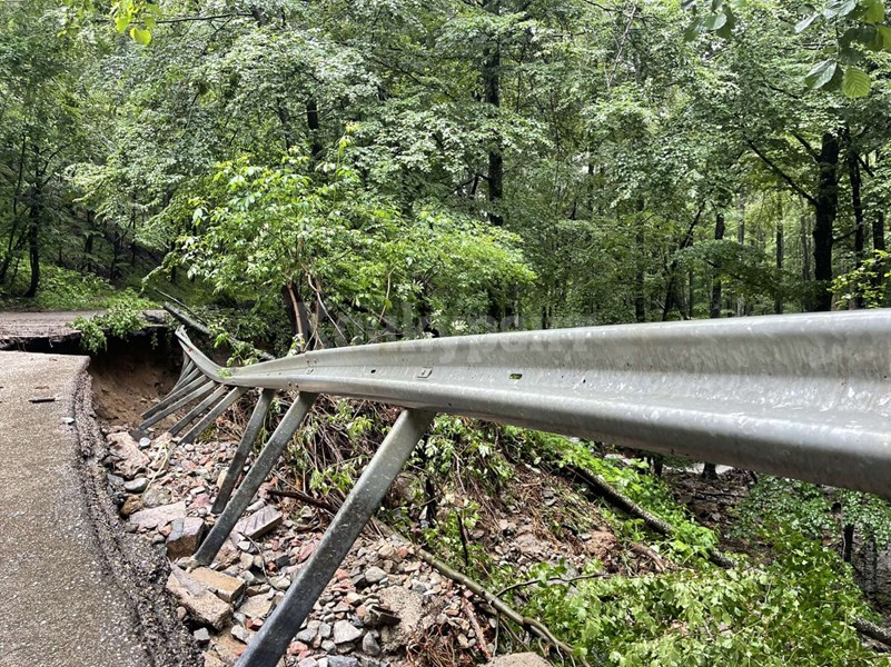 На два от завоите водата преминава през пътното платно и разрушава настилката, има и пропадане на част от пътя