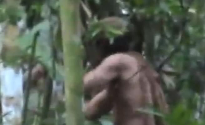 Кадрите, публикувани от Funai - Националната фондация за индианците – специална правителствена агенция в Бразилия, показват мускулест мъж, който сече клони със саморъчно направена брадва.