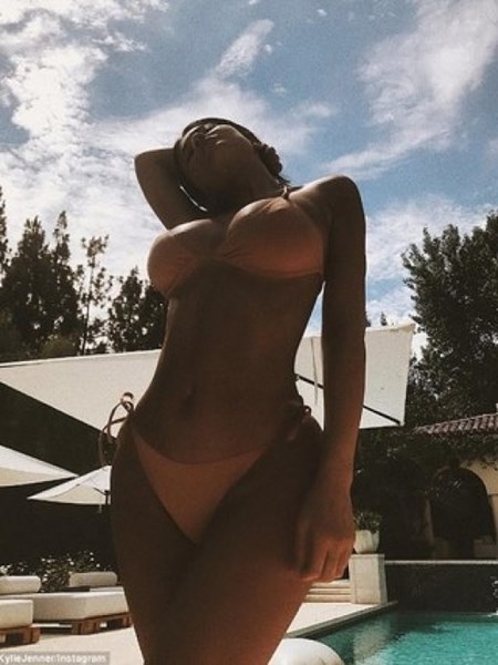 Обърнала гръб на калифорнийското слънце, звезда бе наклонила глава към лъчите, за да разкрие плоския си корем. Кайли била в семейния дом на майка си - 61-годишната Крис Дженър.