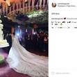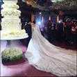 Роклята е с дълъг шлейф от няколко пласта тюл и е украсена със сребърна бродерия и флорални мотиви, както и с хиляди перли и кристали „Сваровски”. За самата сватба се говори, че е струвала няколко десетки милиона долара.