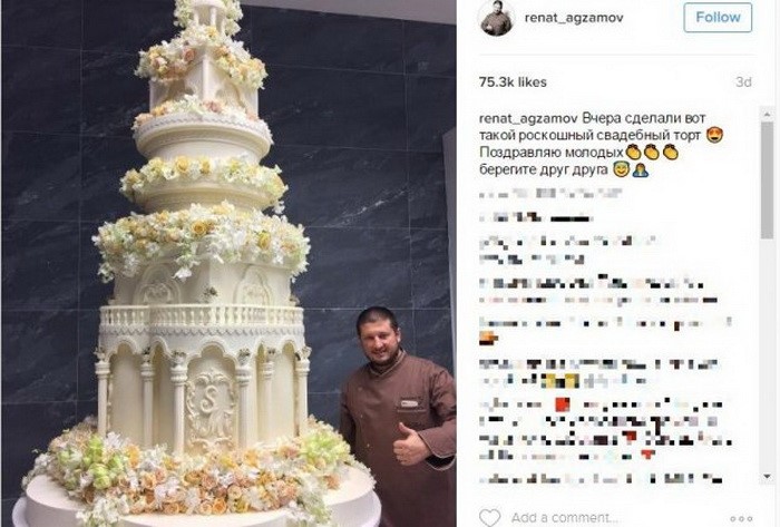 Вечерята се е състояла от предимно изискани блюда от средноазиатската кухня, като е завършила с разрязването на 9-етажната торта, дело на бившия боксьор и настоящ топ сладкар Ренат Агзамов.
