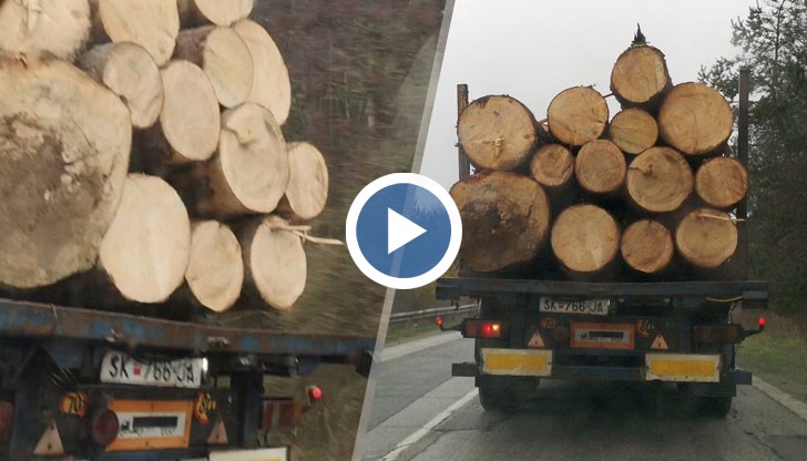 Разбрахме накъде се изнасят част от вековните ни гори. Този ТИР с необработена иглолистна дървесина пътува вероятно към Македония. Регистрационния му номер е SK 766 JA.