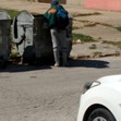 Кадрите показват мъж, облечен с фирмено яке на "Дунарит", който ... рови в контейнер...