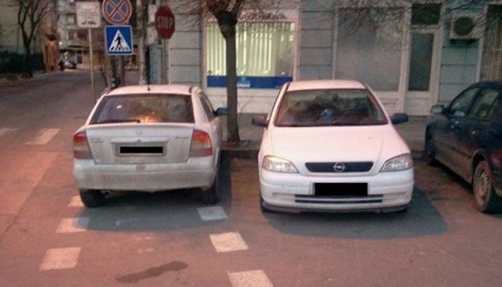Три от автомобилите стоят на известния като "служебен паркинг" в нарушение на задължителното отстояние от кръстовище.