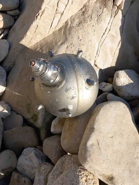 Сигналът за намерена метална сфера е подаден на спешния телефон 112 вчера около 17:20 часа, предава БНР. Тялото от неръждаема стомана е с диаметър около 30 сантиметра и е открито от гражданин на 5 метра от морето, на около половин километър от пречиствателната станция в посока Тузлата.