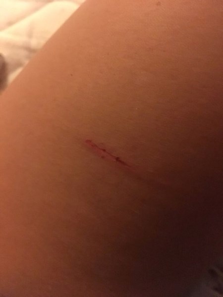 „Бях седнала на маса в заведението, когато до мен се приближи собственикът. Съпругата му е видяла това и решила, че нещо правим. Нахвърли ми се и стана страшен скандал. В един момент започнаха удари с бутилка, а аз се отбранявах. Усетих, че кракът ми е срязан и имам рана.